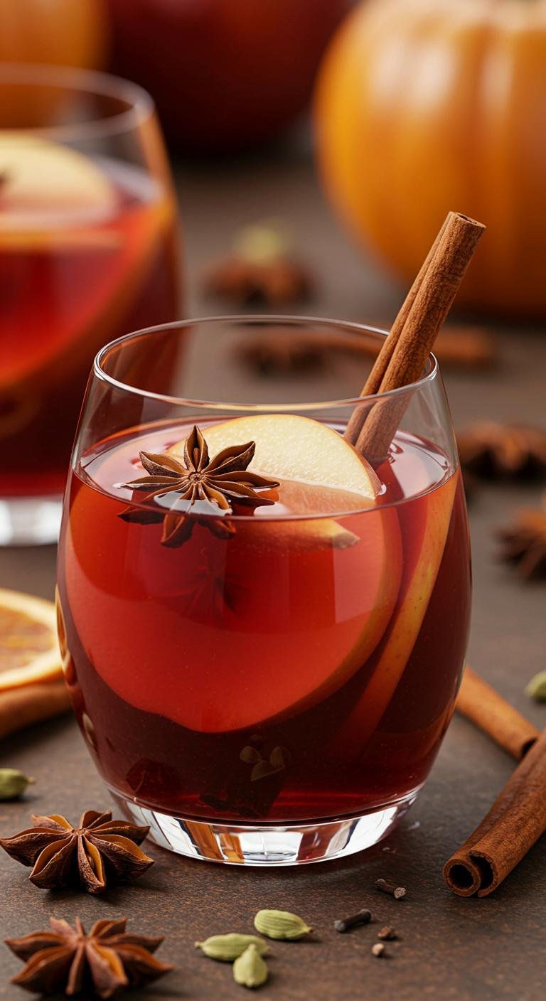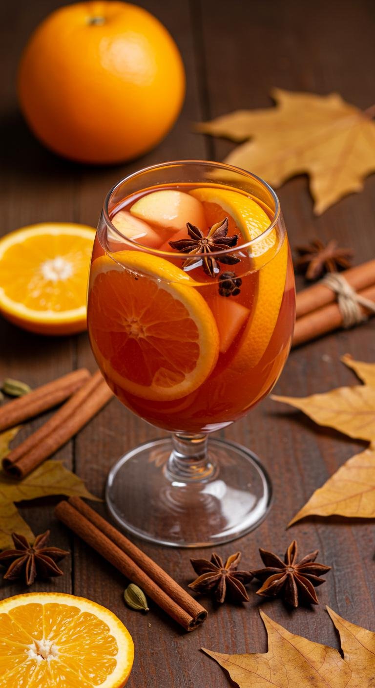 - Mix wine, apple cider, and cooled chai in a pitcher, adding apple and orange slices.