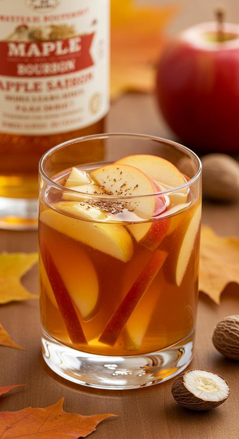 - Mix wine, apple cider, maple syrup, and bourbon in a pitcher.
