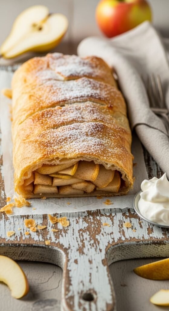 A delightful mix of apples and pears gives this strudel a unique twist.
