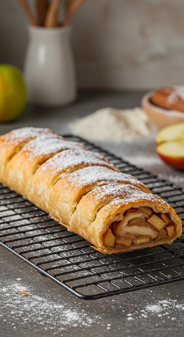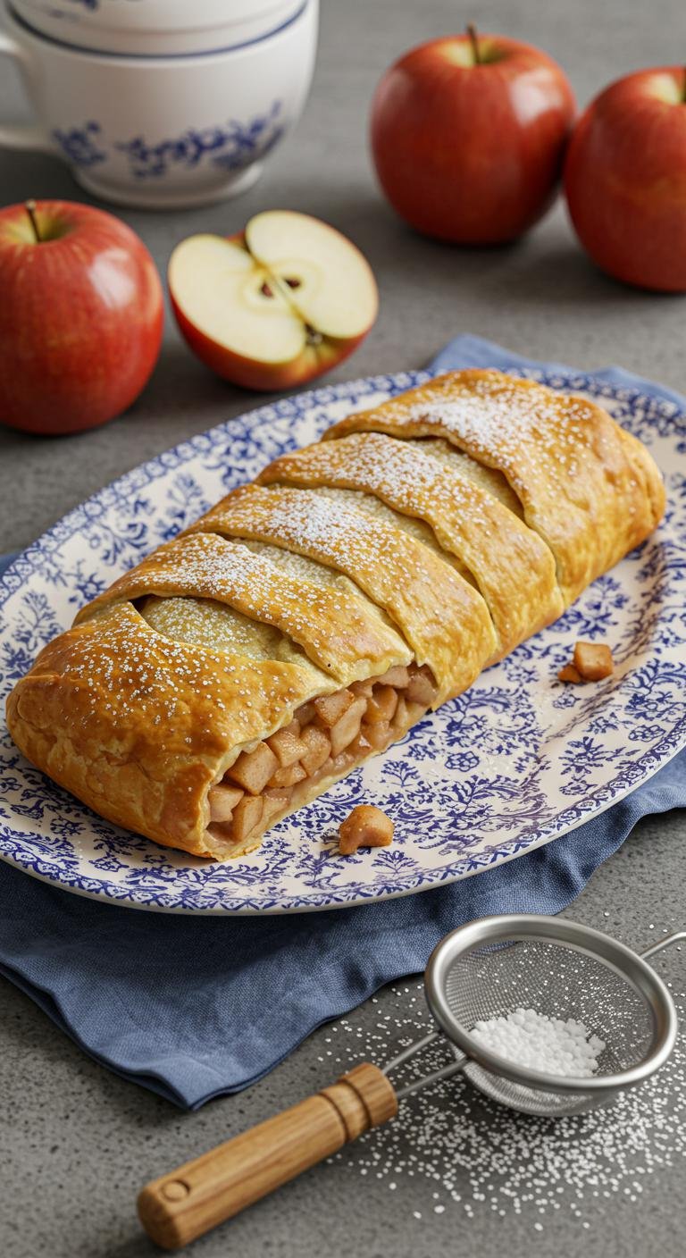 This strudel combines the sweetness of apples and the crunch of nuts for a delightful dessert.
