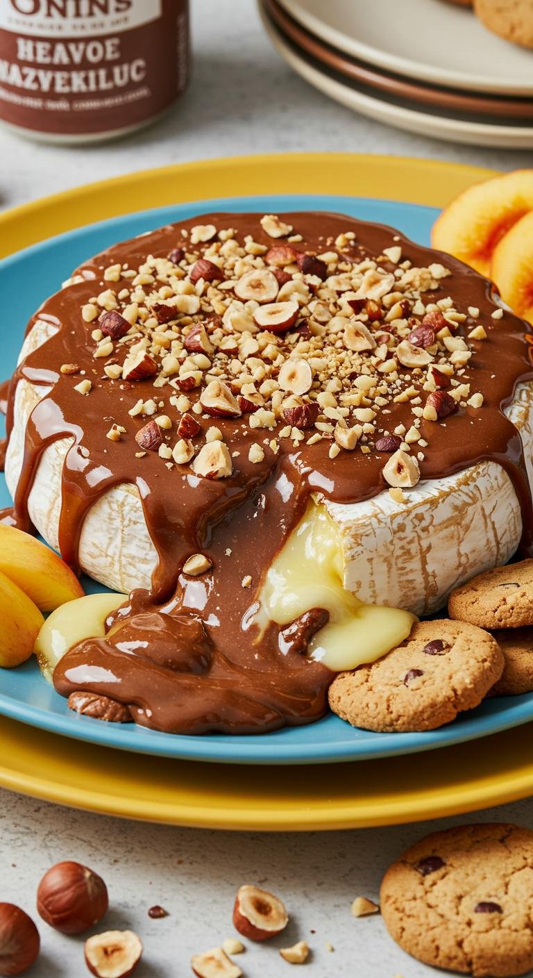 - Spread hazelnut spread on tops and sides of Brie; top with hazelnuts.