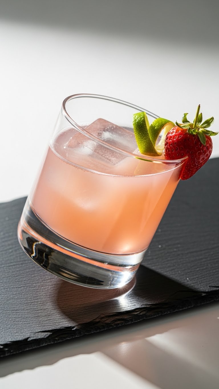 - Garnish with lemon twist and strawberry. Let sit 30 seconds.