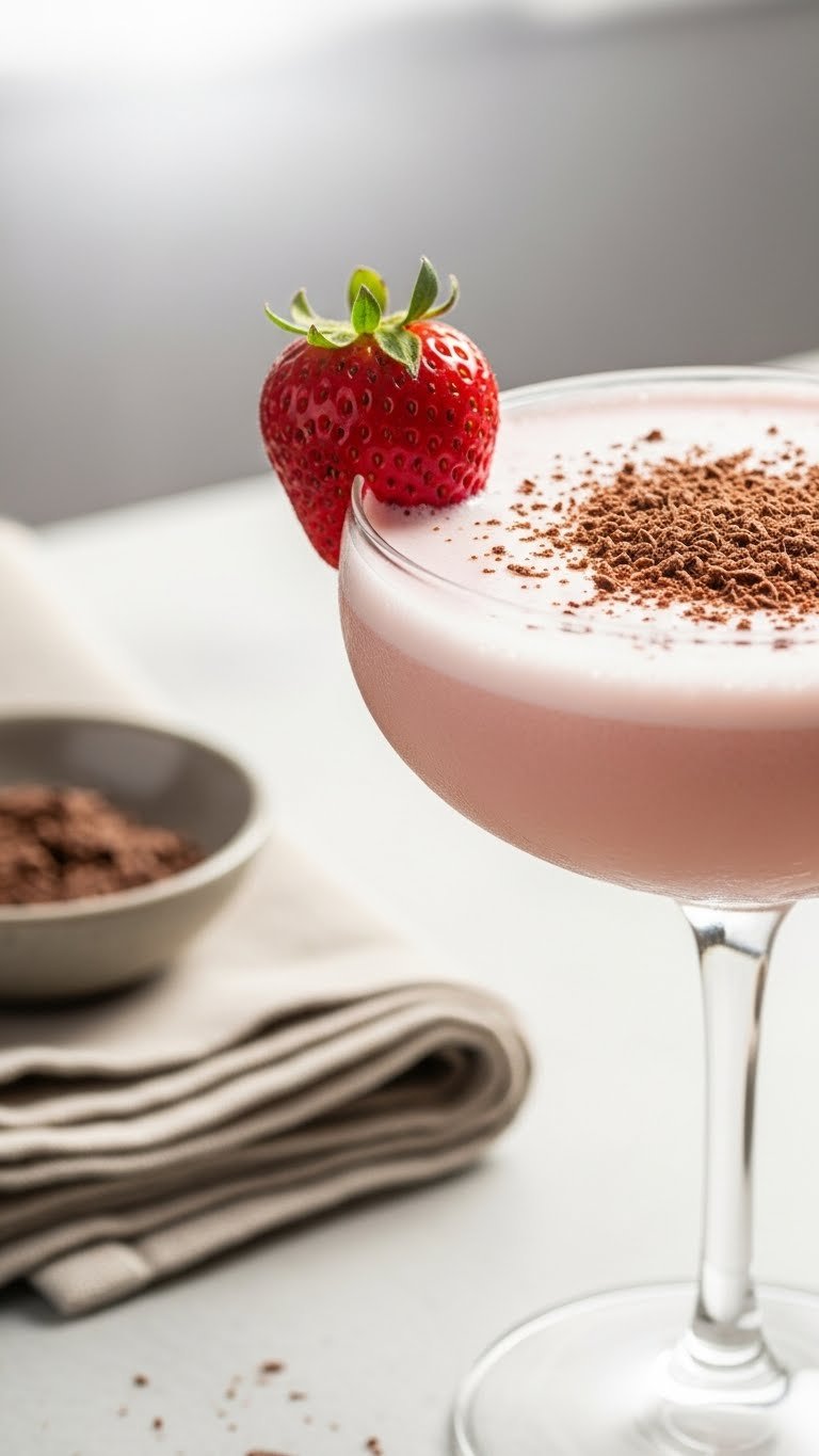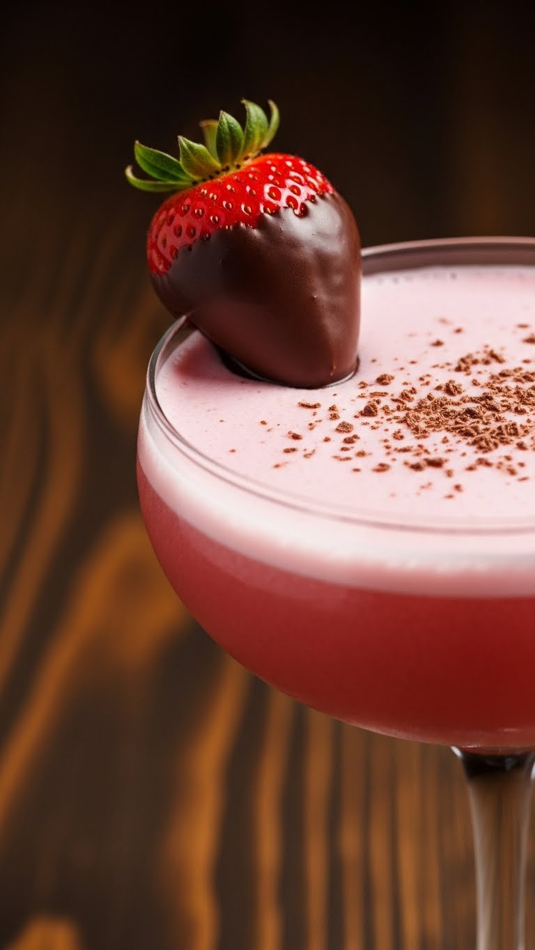 - Garnish with a chocolate-dipped strawberry. Let cool 30–60 seconds before serving.