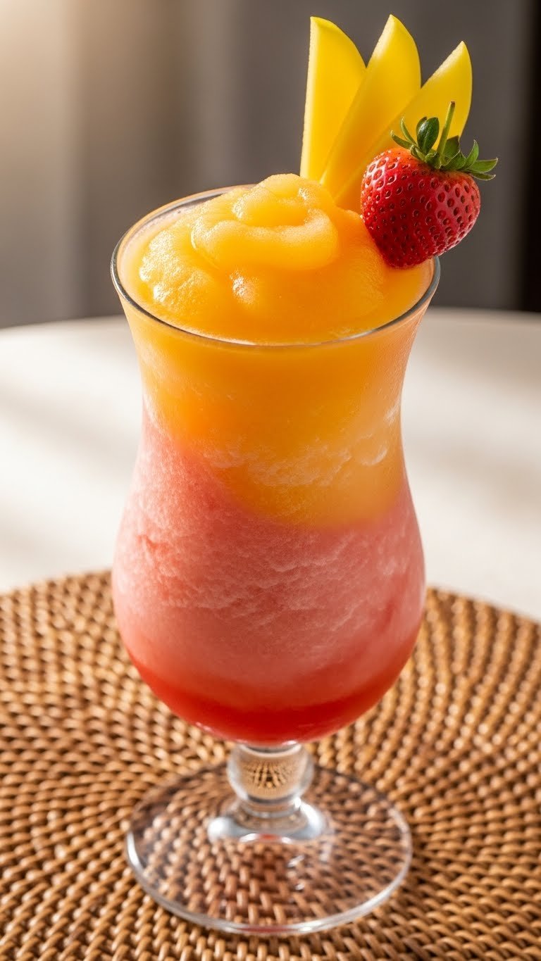 Serve in tiki or highball glasses with colorful garnishes and a small umbrella. Pair with jerk chicken or grilled pineapple salsa. Store leftover puree in fridge for 24 hours; re-blend with ice. Make ahead by freezing fruit medleys in cubes.
