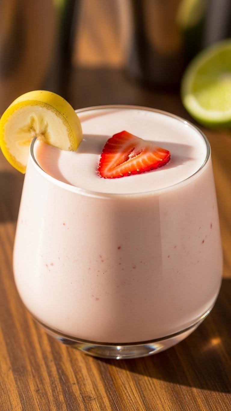 This rum-runner-inspired Smooth Blended Strawberry Daiquiri layers dark rum for molasses depth. It’s richer, slightly spiced, and fruit-forward. The texture remains silky and frosty.