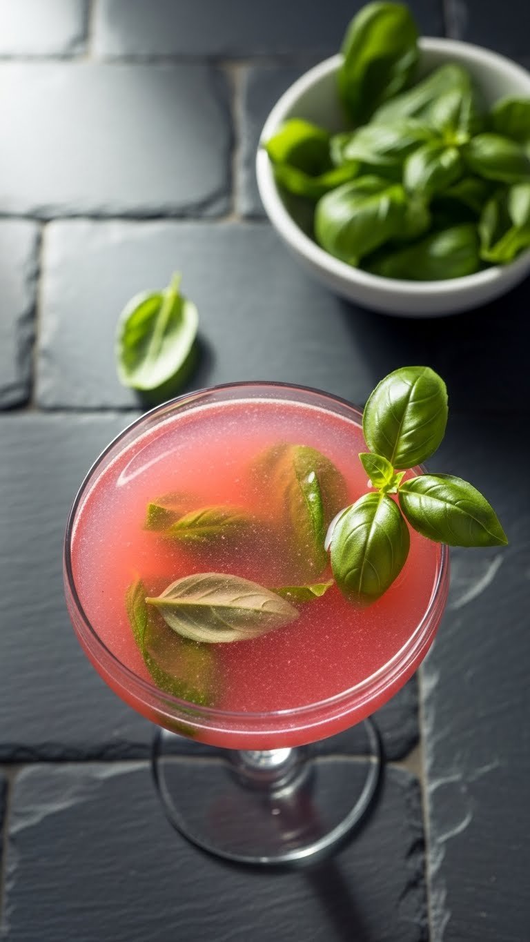 - Pour into chilled glasses, garnish with basil and a lime wheel. Rest 1 minute before serving.