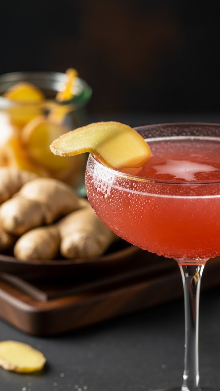Serve in coupe glasses with candied ginger on the rim. Pair with spicy Asian dishes or grilled pork. Store ginger syrup in fridge for up to 2 weeks and frozen fruit for later blending. Make ahead by preparing ginger syrup in advance.