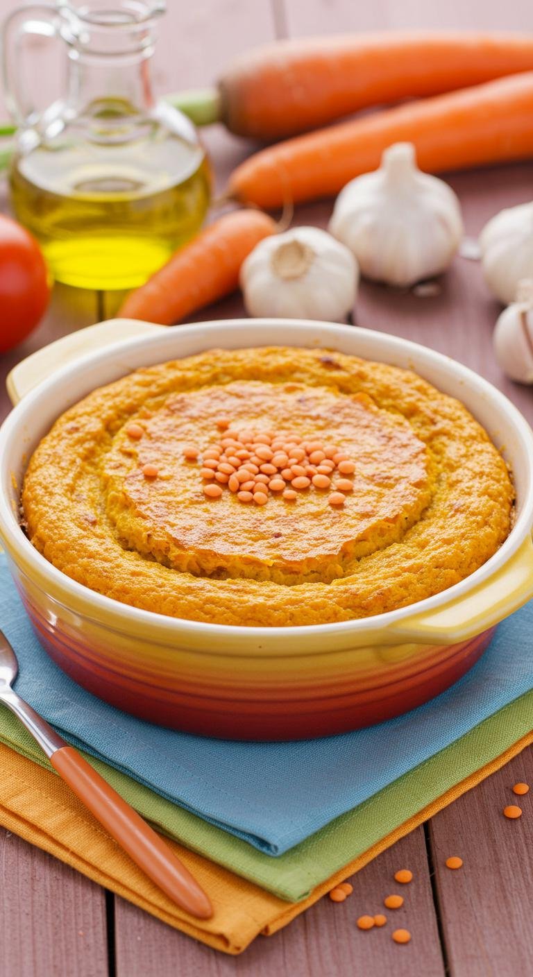 - Blend lentils, carrots, egg yolks, milk, butter, and salt in a bowl.