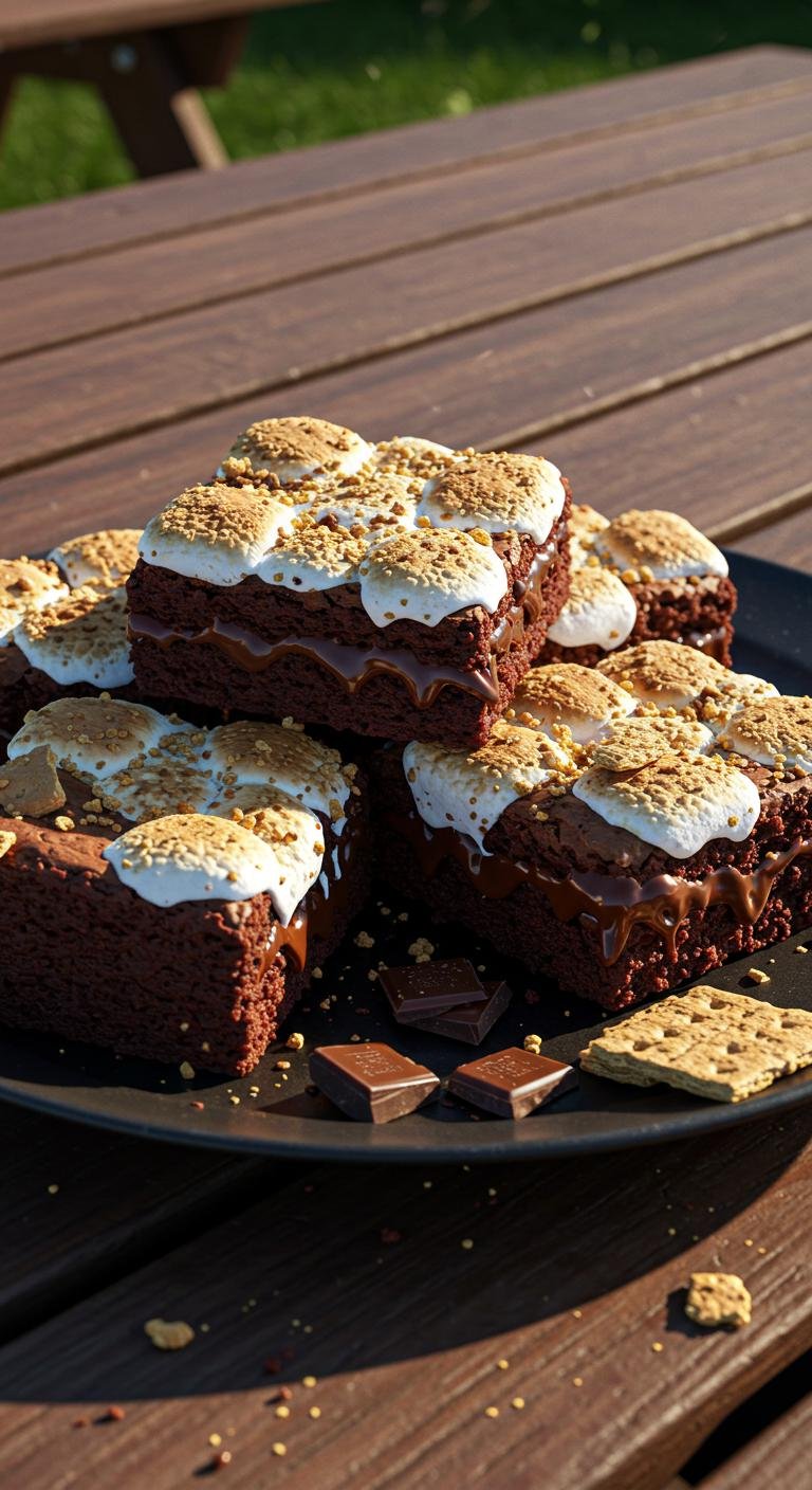 - Bake for 25 minutes, then top with marshmallows and graham crackers, and bake for an additional 5 minutes.