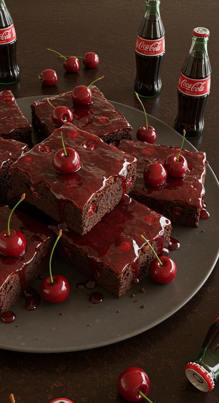 - Combine melted butter, sugar, and eggs, then mix in flour, cocoa, and cherry cola.