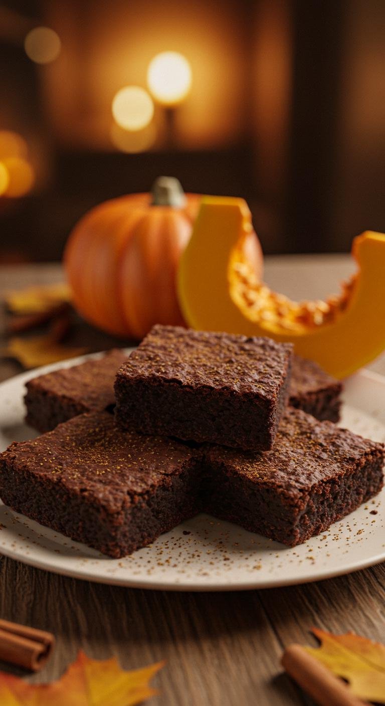 - Mix melted butter, sugar, eggs, and pumpkin, followed by flour, cocoa, and pumpkin spice.