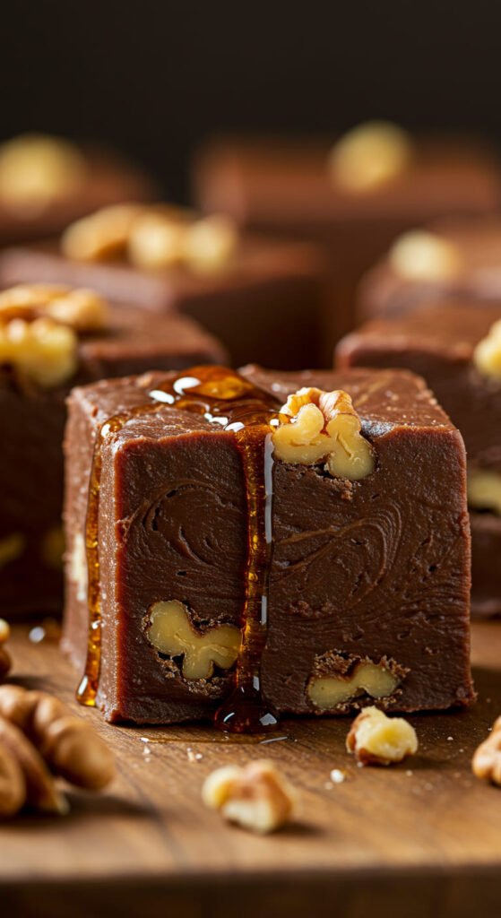 - Heat chocolate chips and condensed milk until melted, then mix in maple extract.