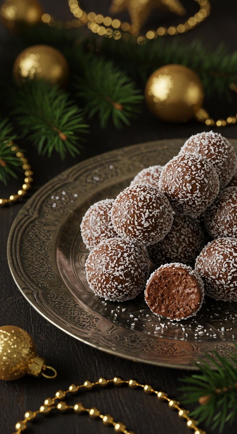 - Chill mixture until firm, then roll into balls and coat in coconut.