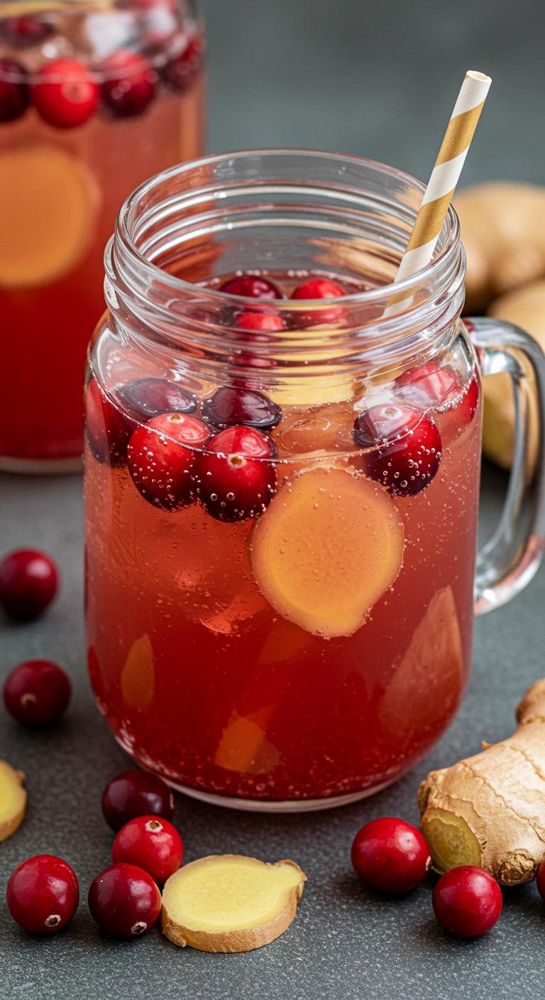 - In a large bowl, stir together cranberry juice and ginger beer.