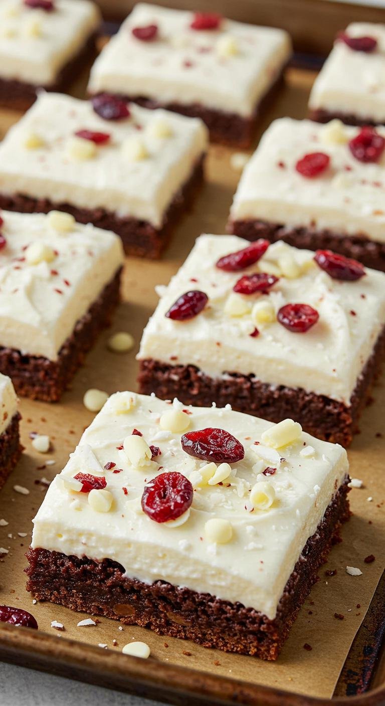 - Stir in cranberries and white chocolate, spreading the mixture in a prepared pan.