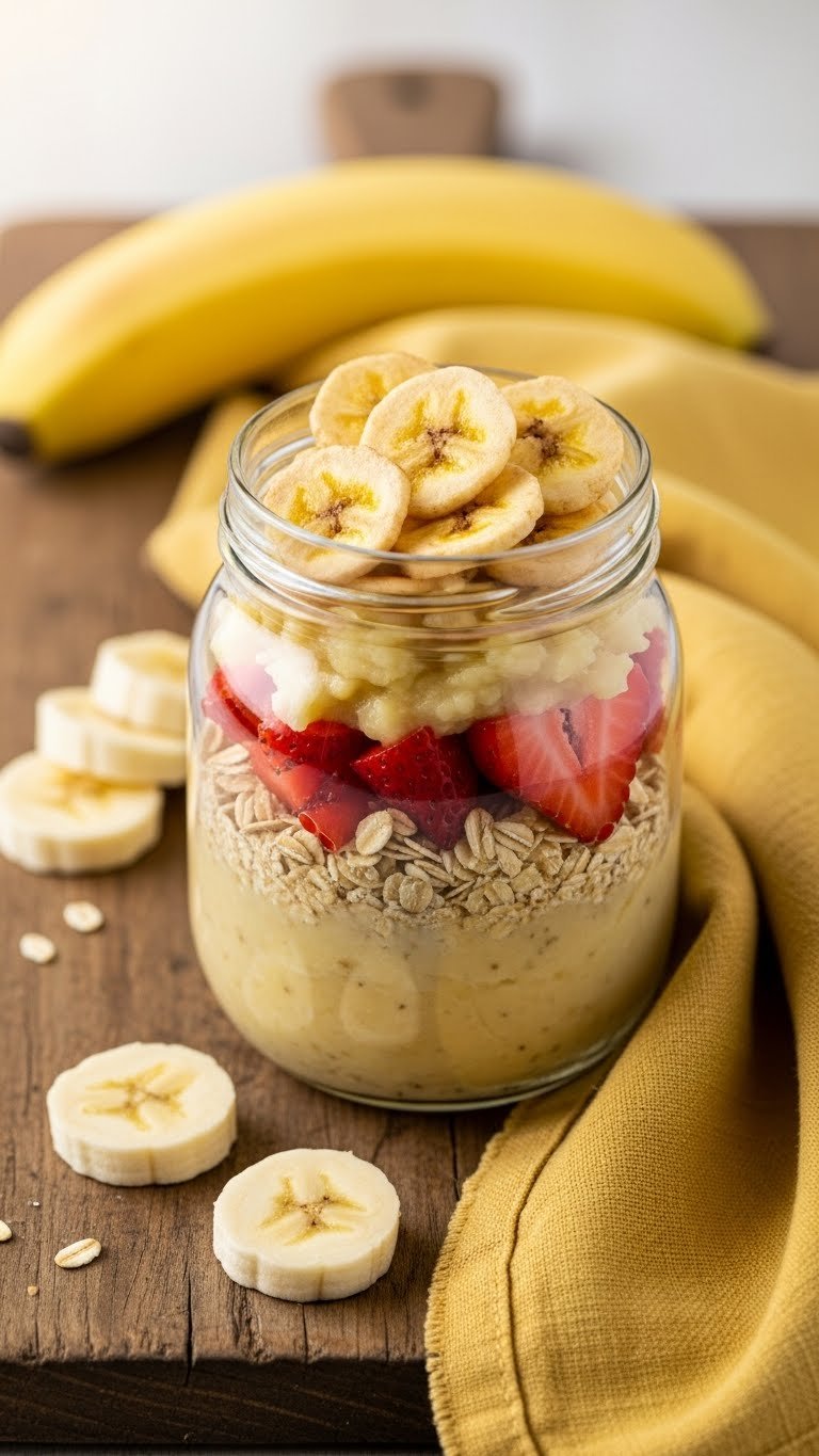 This strawberry banana overnight oats recipe blends ripe banana’s creaminess with fresh strawberry brightness. It’s naturally sweet and silky with soft, chewable oats. Great for kid-friendly breakfasts and post-workout refuels. You’ll notice a fragrant banana aroma and pretty pink swirls where berries meet banana.