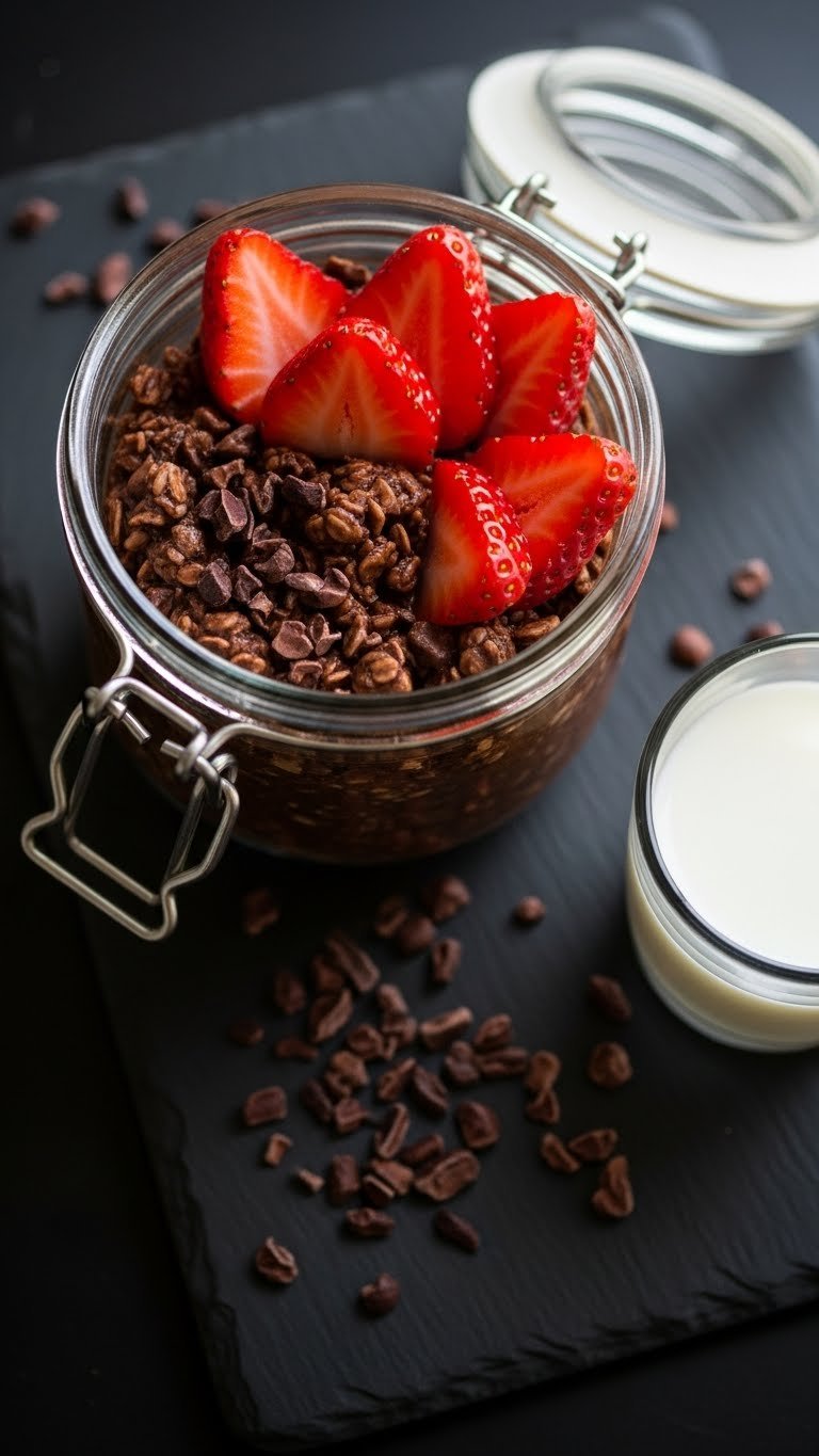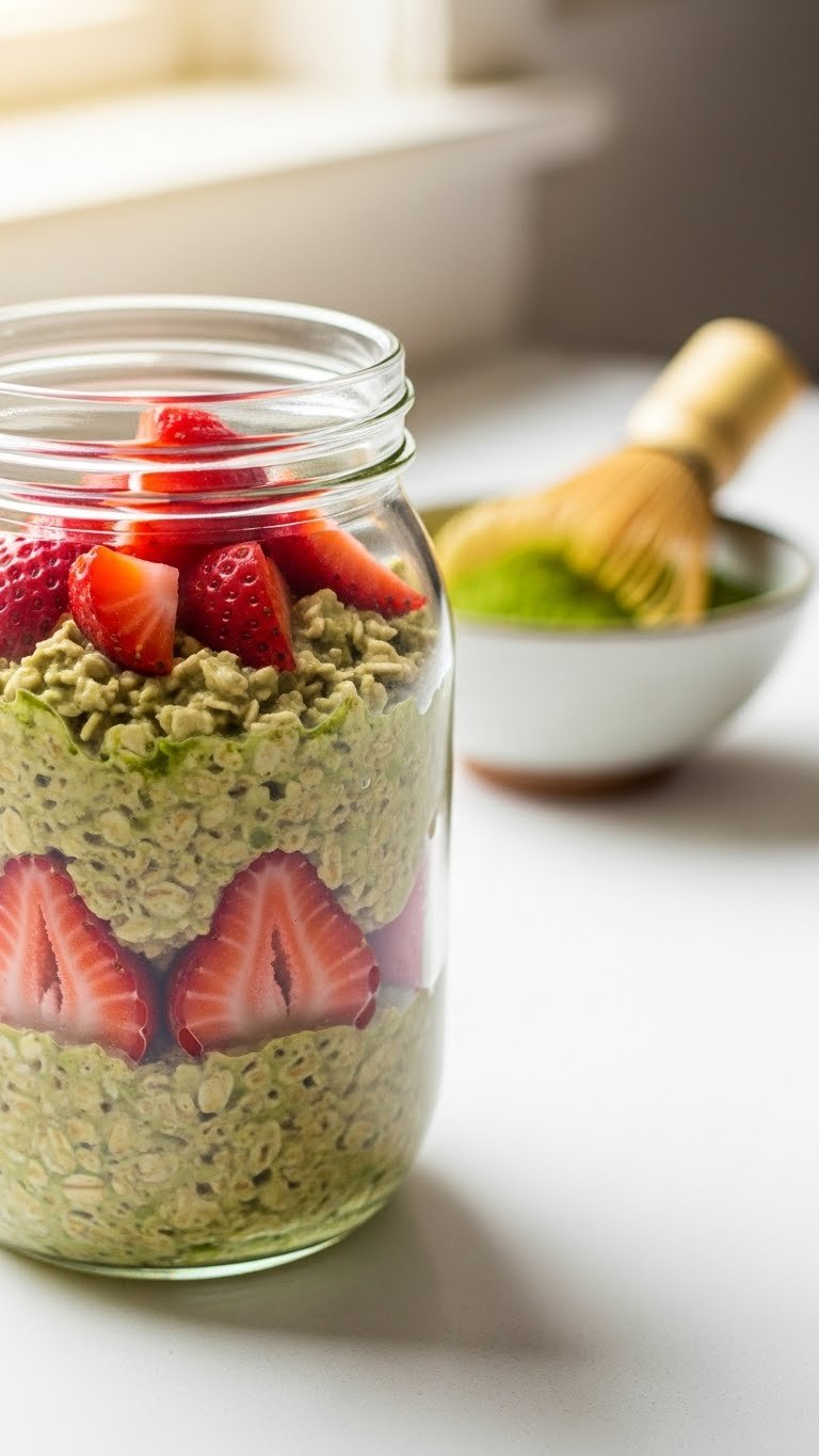 Matcha adds a bright, earthy note to strawberry overnight oats, balancing sweetness with subtle bitterness. This jar feels sophisticated and energizing. It’s ideal for matcha fans and those who want a caffeine boost with breakfast. Expect grassy matcha aroma and a smooth but slightly tannic finish.