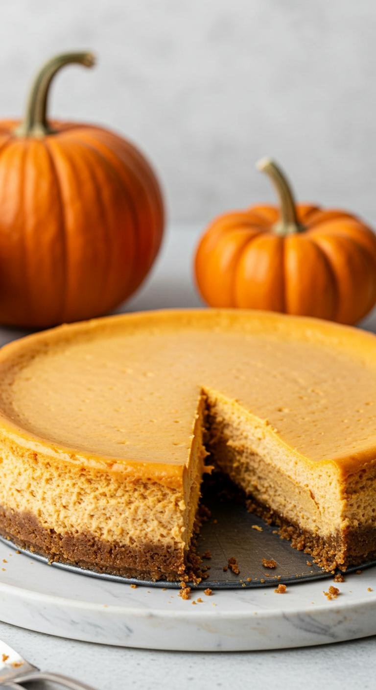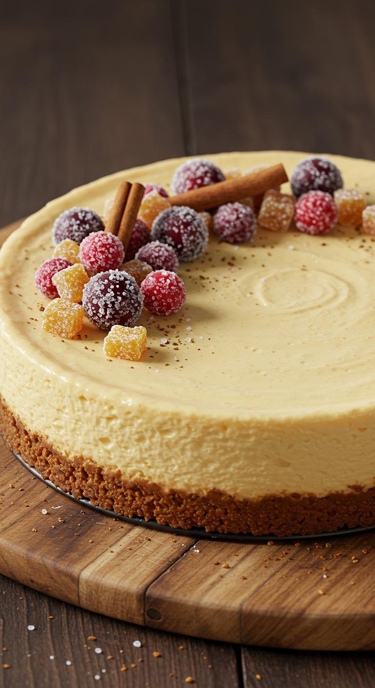 A delightful fusion of pumpkin pie and eggnog cheesecake that captures the essence of fall and winter.