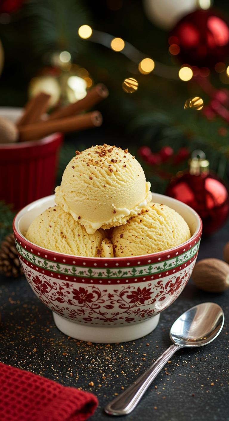 A delightful frozen treat that captures the essence of eggnog—perfect for dessert or a refreshing snack.