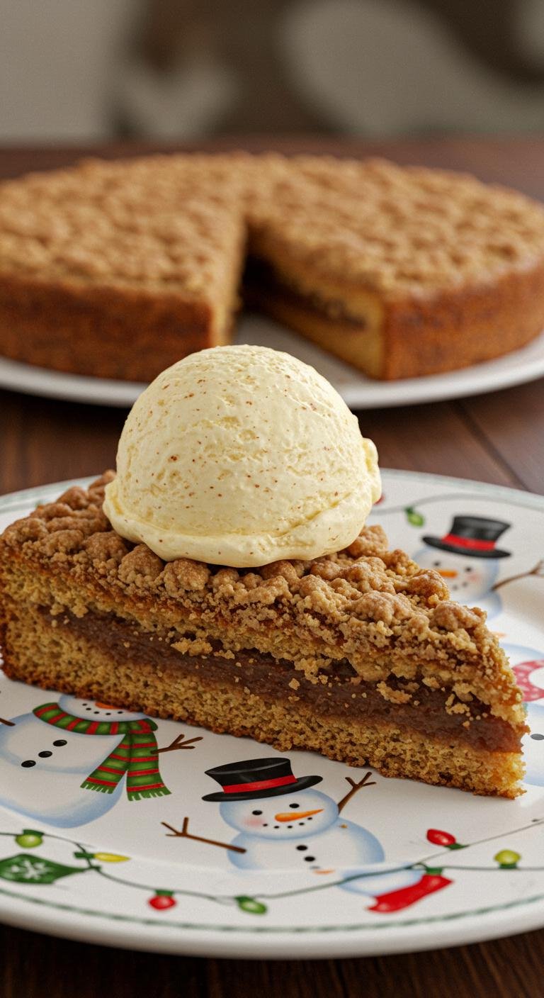- Softly scoop eggnog ice cream over spice cake slices.
