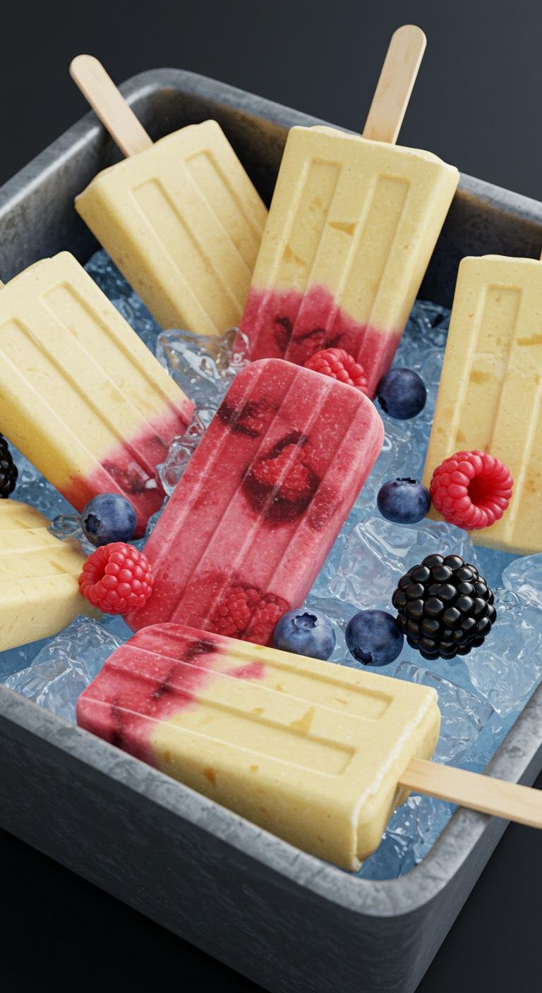 - Insert sticks and freeze for several hours until solid.