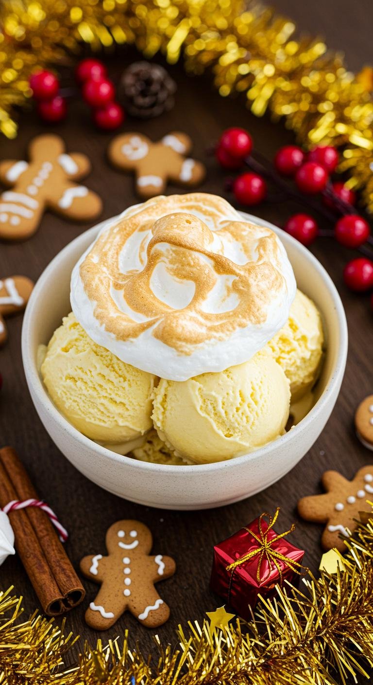 Eggnog Ice Cream with Meringue Topping