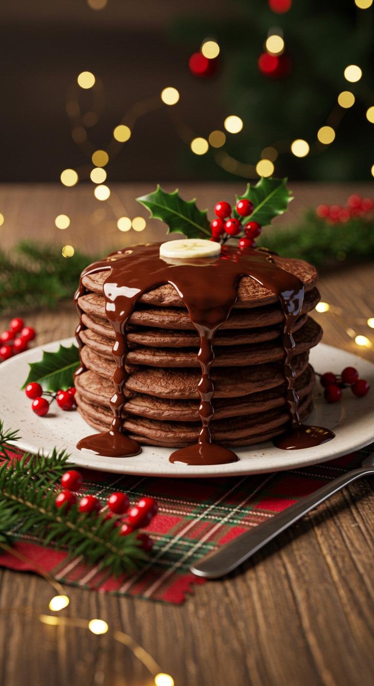 Chocolate lovers will rejoice over this rich version of eggnog pancakes!