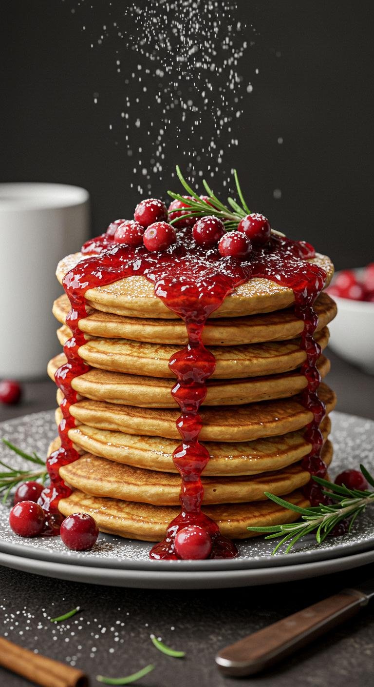 Celebrate the season with tart cranberry sauce atop your eggnog pancakes.