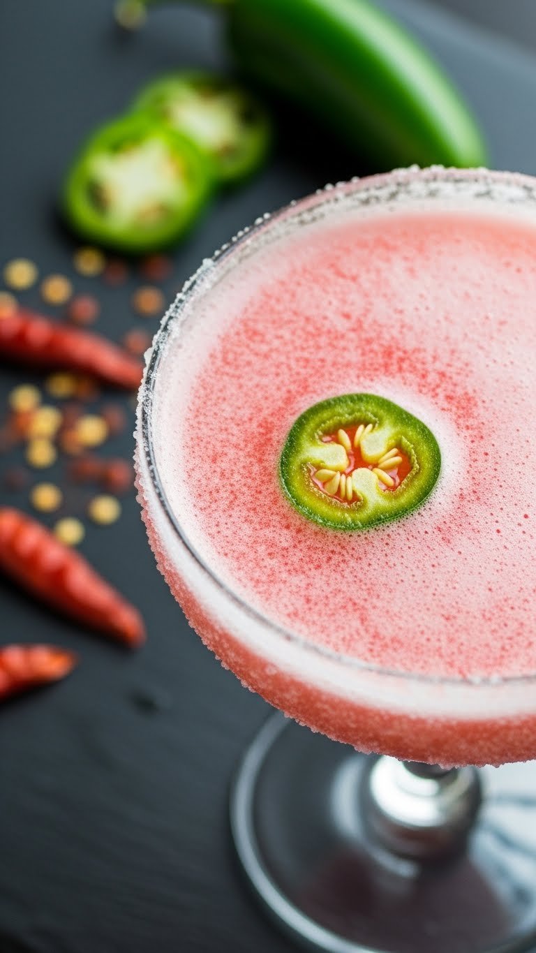 This spicy strawberry jalapeño frozen daiquiri brings a peppery kick. Fresh jalapeño infuses heat that contrasts sweet strawberries. It’s bold and balanced with citrus and rum. You’ll taste initial fruit sweetness followed by a warming finish. Serve to guests who like a little heat.