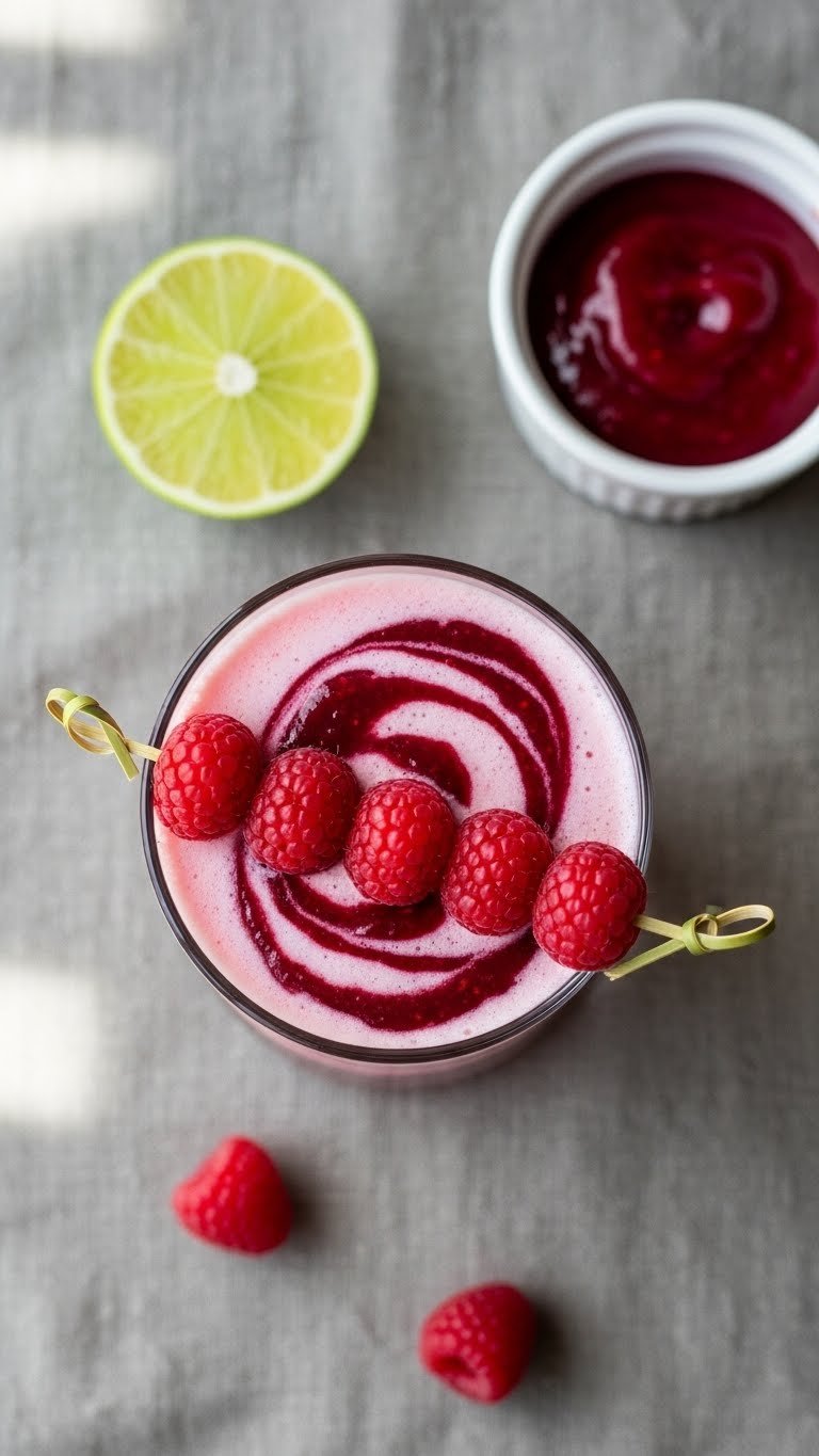 - Garnish with raspberries and lime.