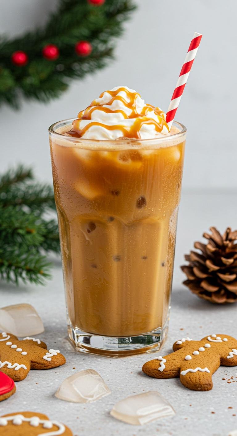- Combine cooled coffee, milk, and gingerbread syrup.