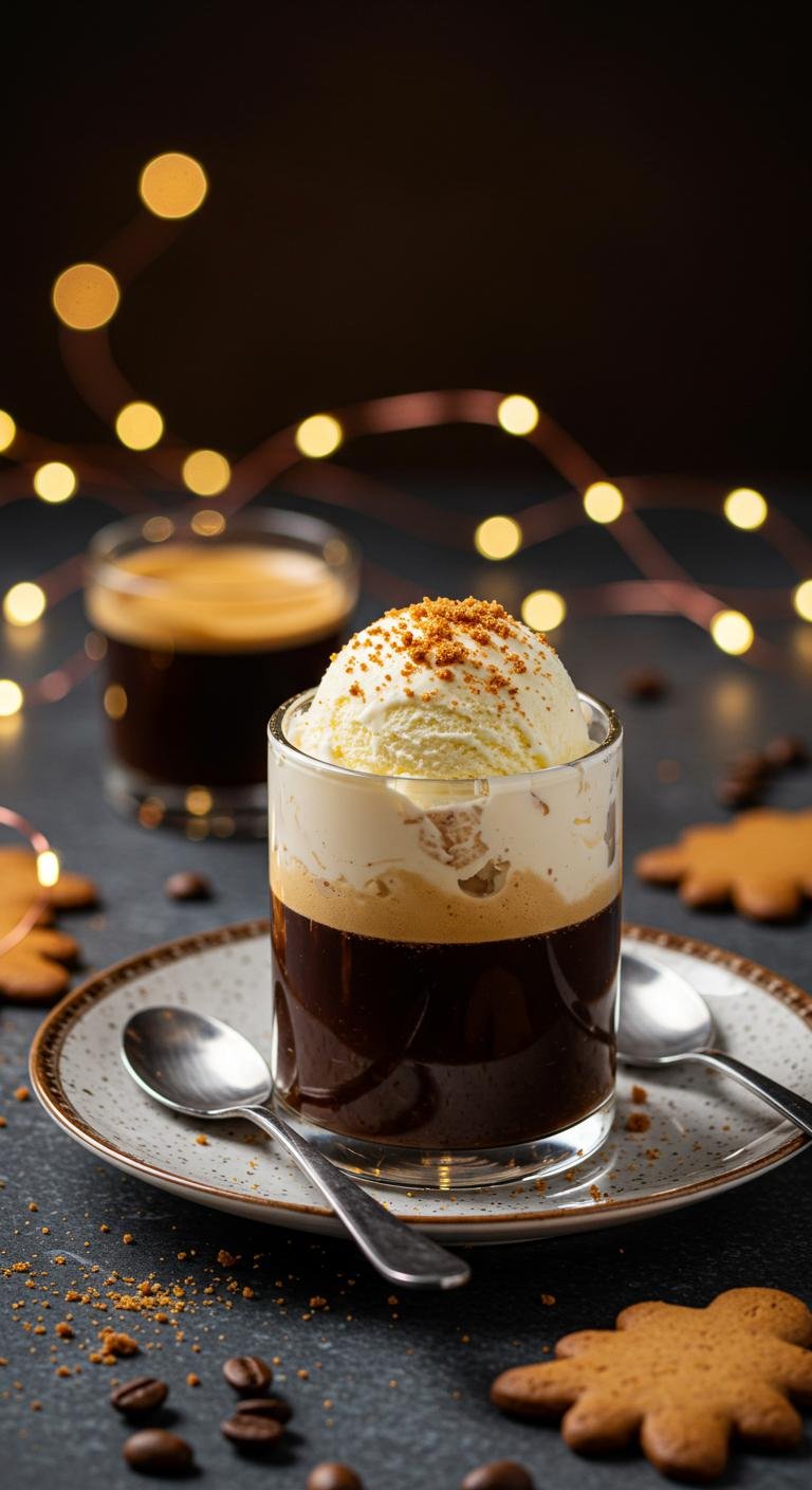 - Pour warm espresso over ice cream and top with cookie crumbs.
