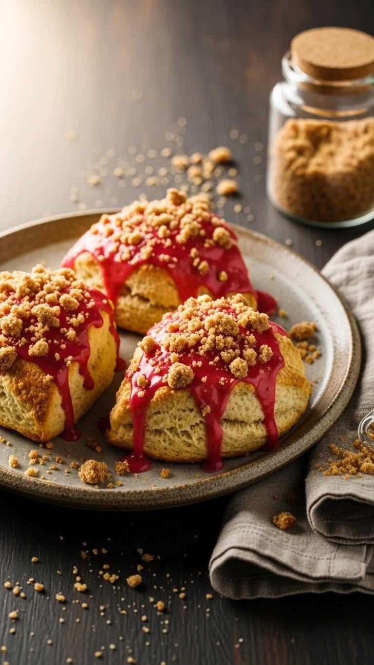 These scones hide a pistachio-strawberry filling that adds crunch and richness. The glossy glaze makes them look bakery-perfect. They’re nutty, fruity, and a little decadent.