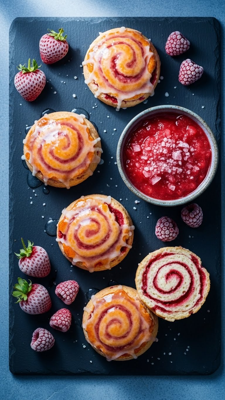 Serve on a neutral plate to show the swirl. Garnish with a few frozen berries for a frosty look. Pair with black tea or sparkling lemonade. Store in airtight container 2 days; freeze unglazed scones for up to 3 months. These are excellent for summer gatherings.