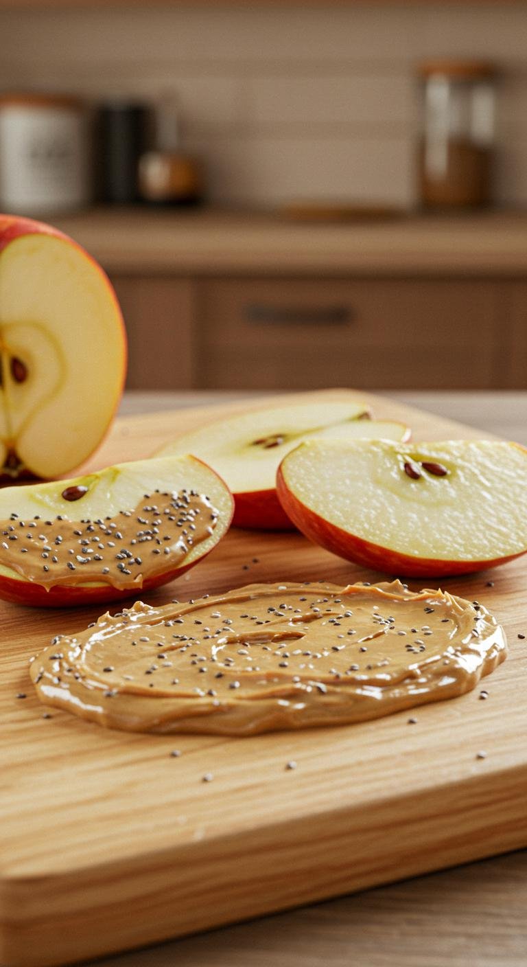 Sliced apples with nut butter provide a perfect blend of crunch and creaminess.