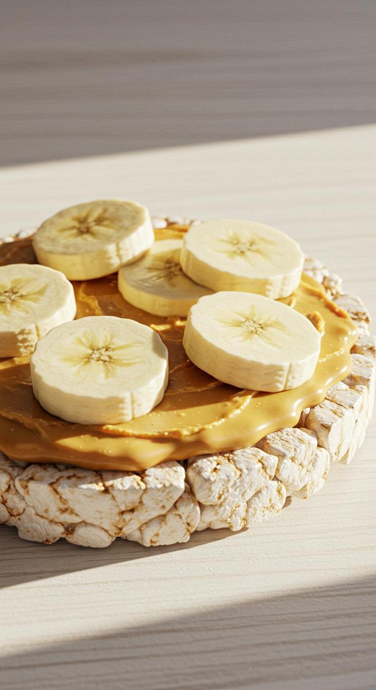Crunchy rice cakes topped with creamy nut butter and fruit make a satisfying treat.