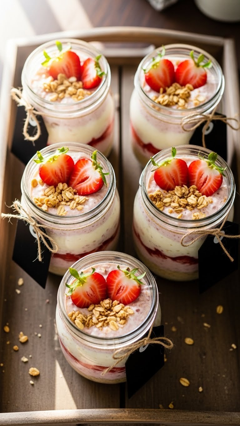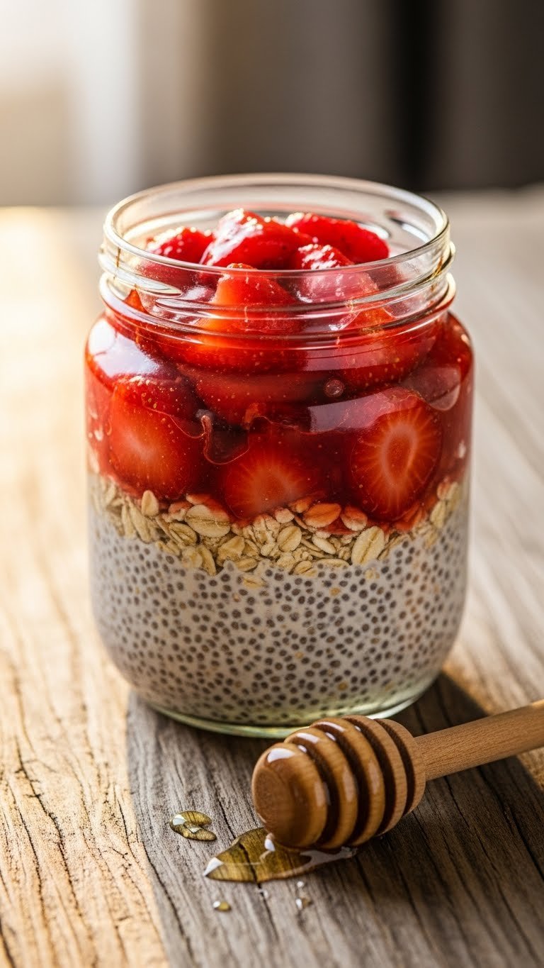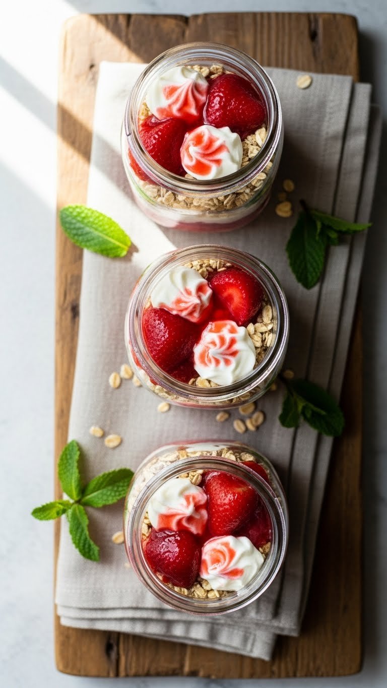 Layer with extra strawberry compote on top for visual contrast. Drizzle honey and add a lemon zest pinch. Pair with jasmine tea or an oat milk latte. Keep in fridge up to 3 days. Prepare jars for quick breakfasts or pack for a picnic.