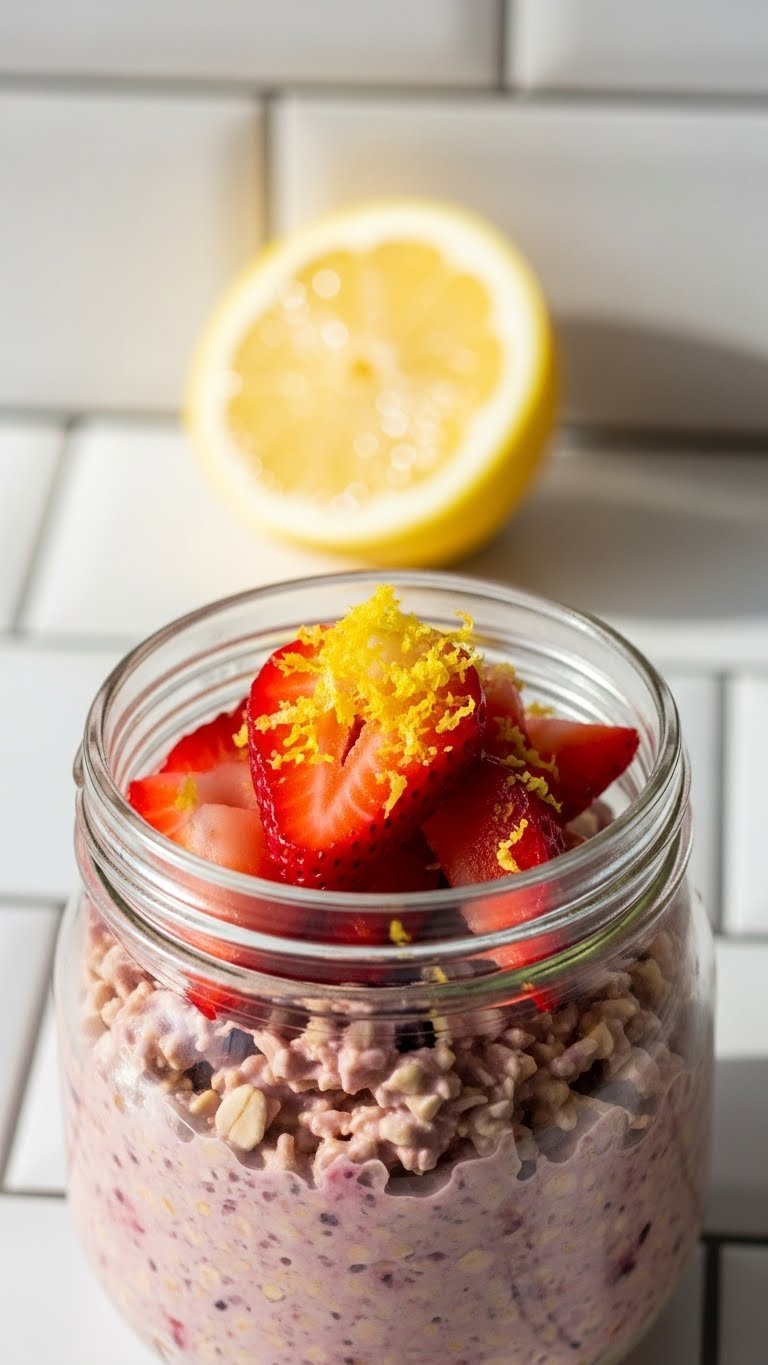 9. Strawberry Cheesecake Overnight Oats with Lemon Zest