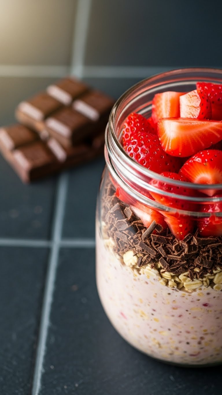 10. Strawberry Cheesecake Overnight Oats with Dark Chocolate Shavings