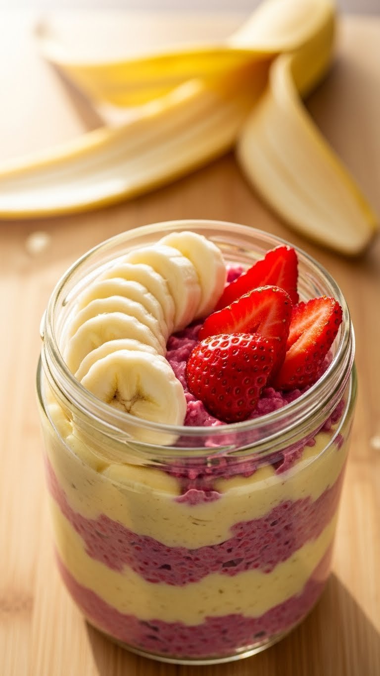 11. Strawberry Cheesecake Overnight Oats with Banana Swirl