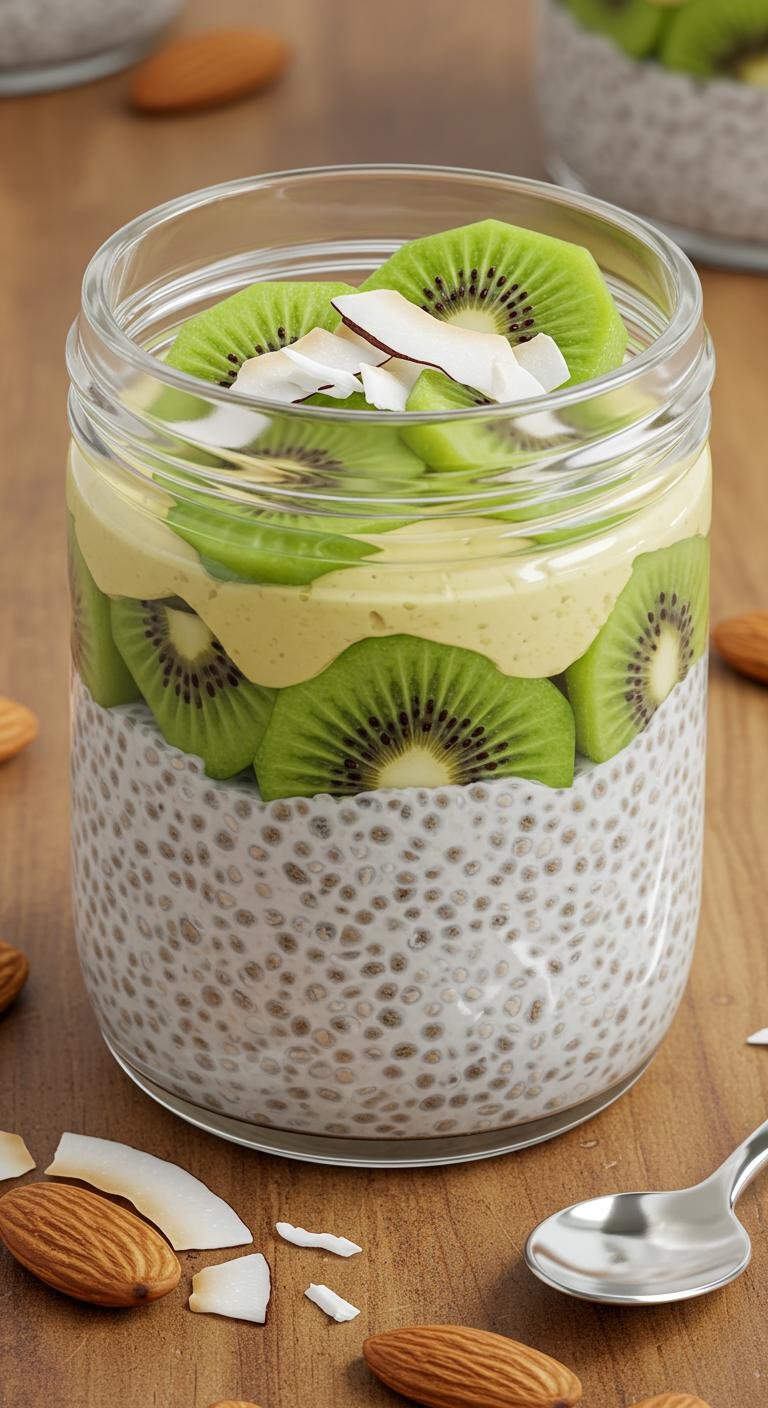 - Combine chia seeds, almond milk, and sweetener in a jar.