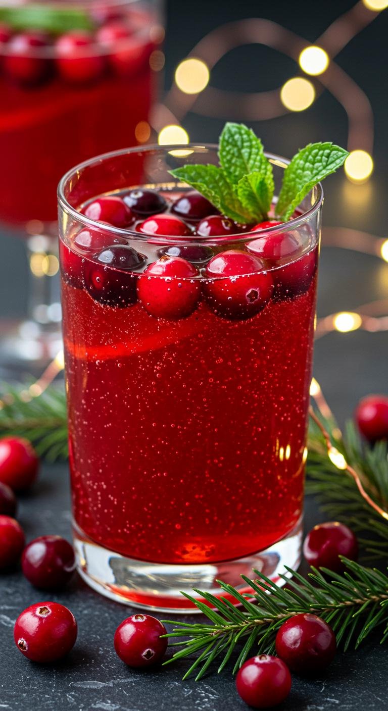 - Serve in glasses and garnish with cranberries and mint.
