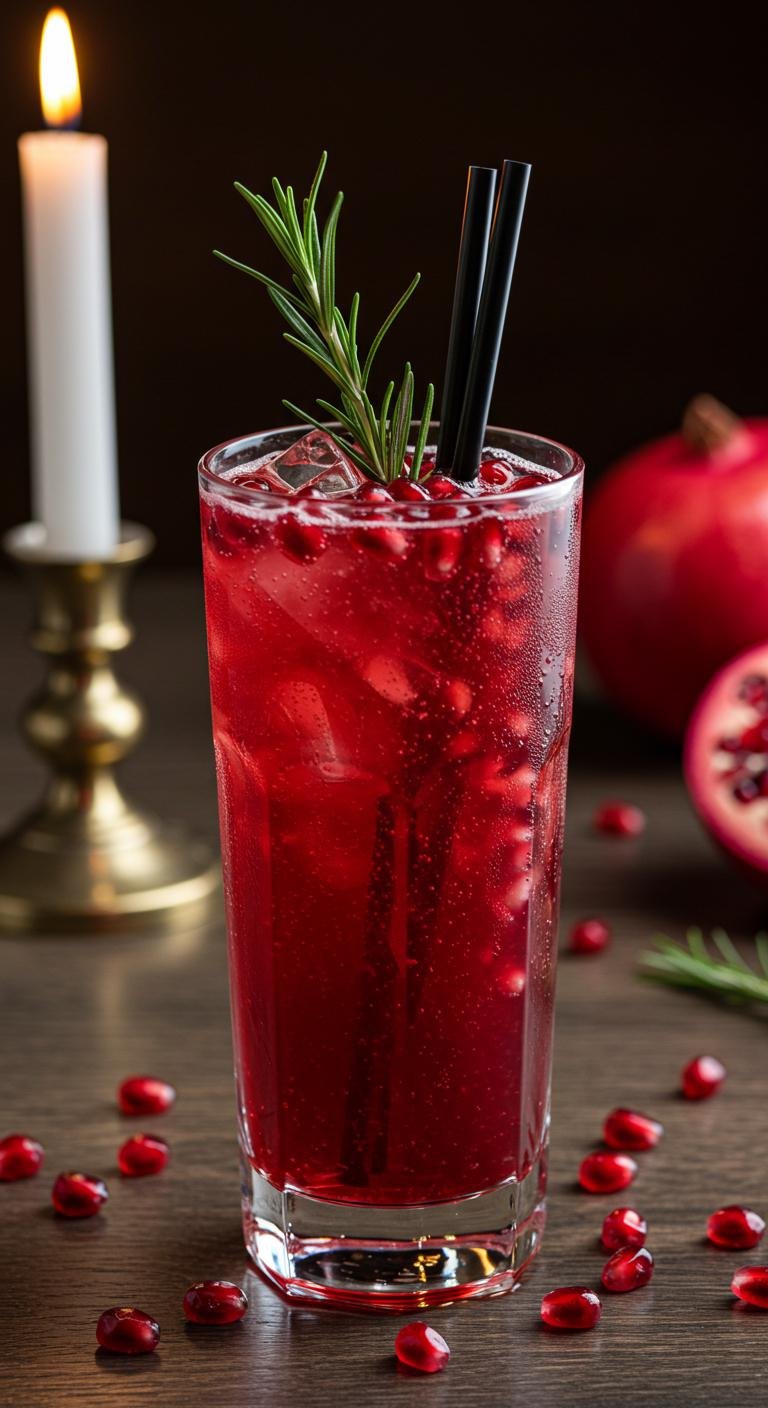 - Garnish with pomegranate arils and rosemary.