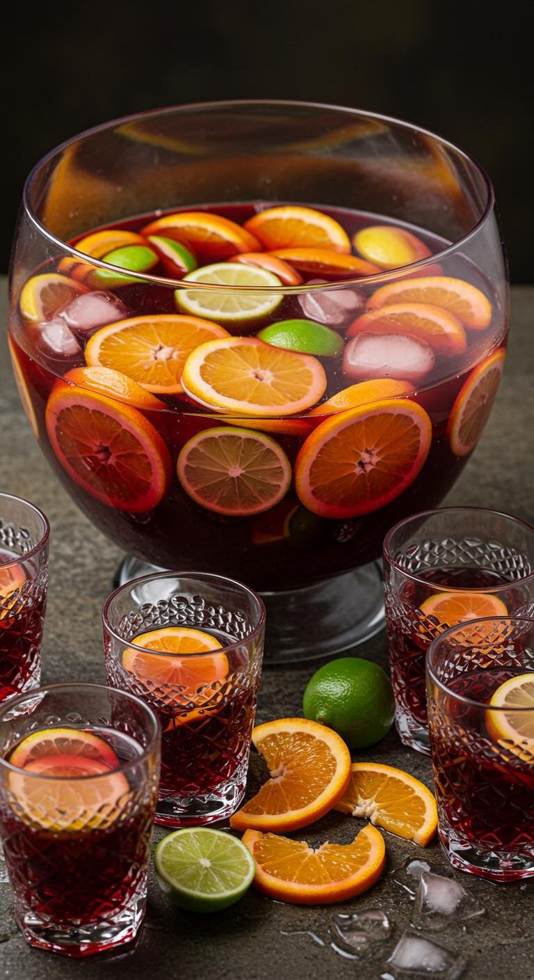 - Mix white wine and citrus slices in a punch bowl.