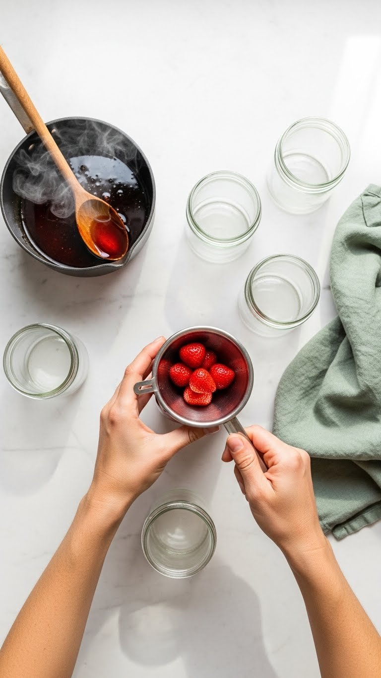 Tip: choose ripe, firm berries without bruises for best texture when canning strawberries.