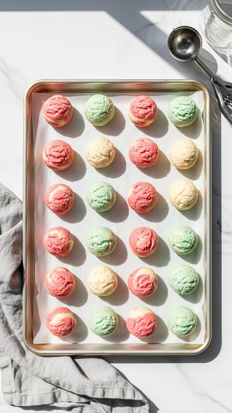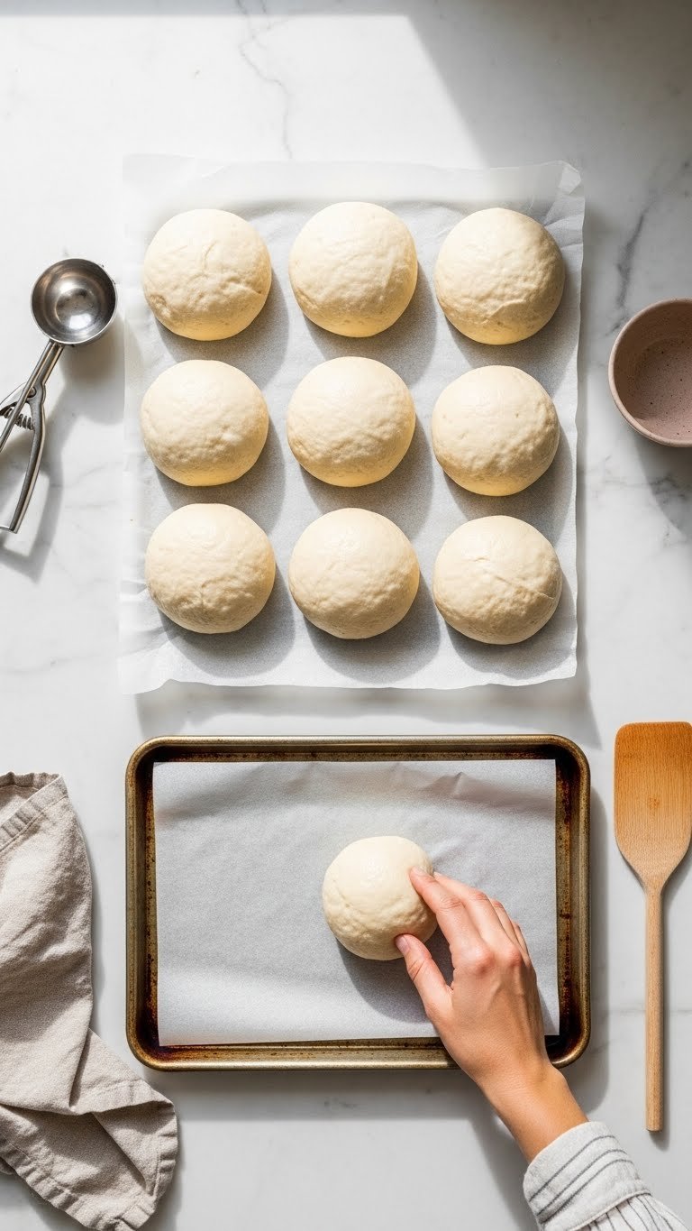 - Place balls on a parchment‑lined baking sheet, spaced 1 inch apart.