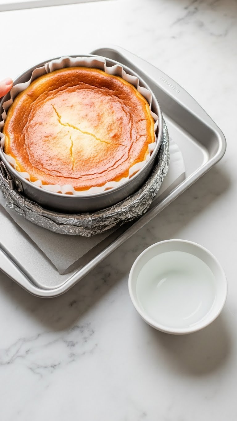 - Use a springform pan with a tight seal and double-wrap the exterior with foil for the water bath.