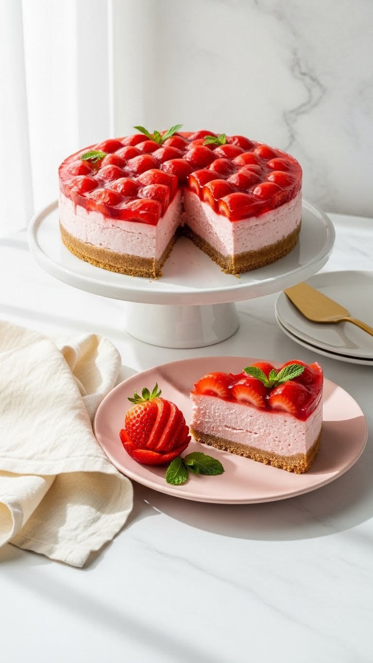 You want a flawless strawberry cheesecake with no cracks — glossy top, smooth texture, and that perfect slice. Cracks happen when the cake cools too fast or the batter is overmixed. This guide shows exactly what to do so your cheesecake sets evenly and looks pin-worthy.