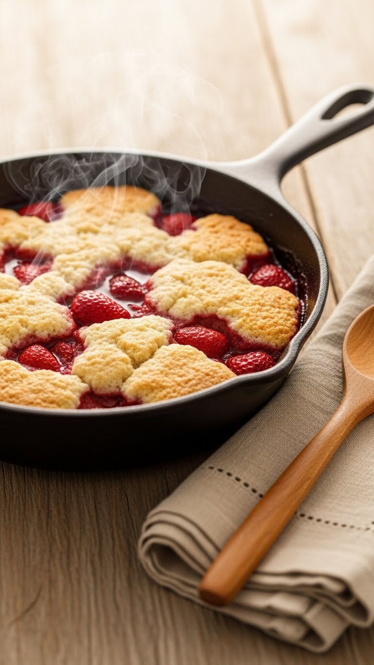 Enjoy this easy method when you want a rustic strawberry cobbler in a cast iron skillet that looks homemade and tastes like summer.