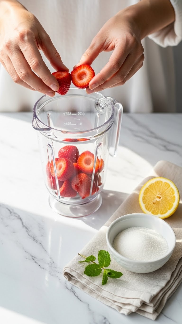 - If you like extra sweetness, macerate the strawberries with sugar for 10 minutes before blending.